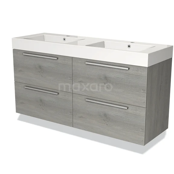 Modulo Bathroom furniture with sink | 140 cm Grey oak Flat front Mineral marble 4 drawers