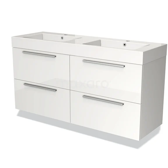 Modulo Bathroom furniture with sink | 140 cm High-gloss white Flat front Mineral marble 4 drawers