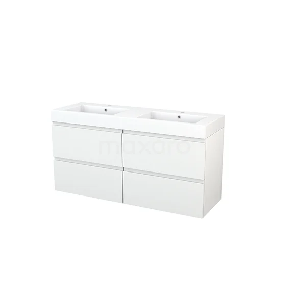 Modulo+ Bathroom furniture with sink | 140 cm High-gloss white Handle-less front Mineral marble 4 drawers