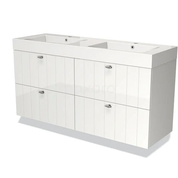 Modulo Bathroom furniture with sink | 140 cm High-gloss white Slat front Mineral marble 4 drawers