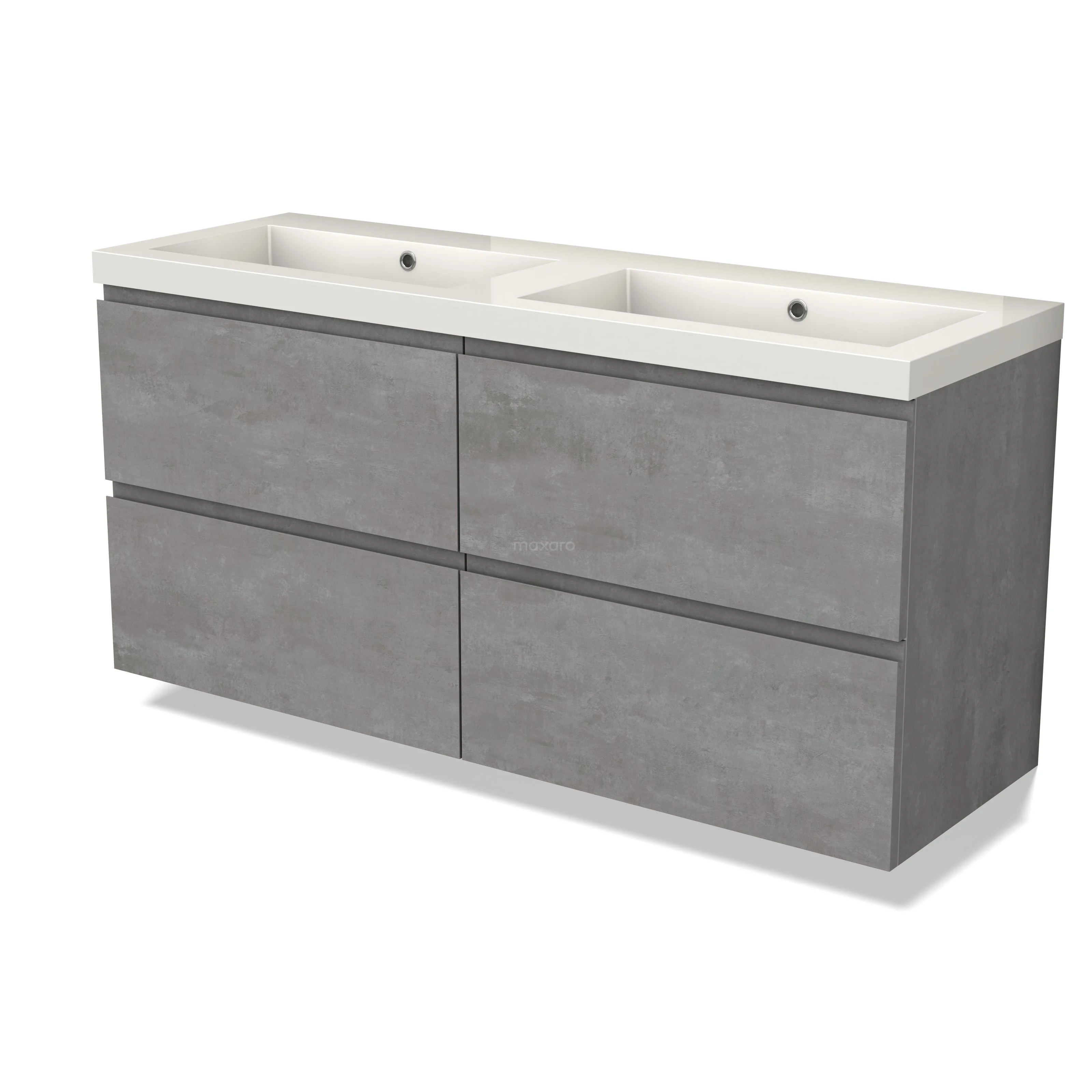 Modulo Bathroom furniture with sink | 140 cm Light grey concrete Handle-less front Mineral marble 4 drawers