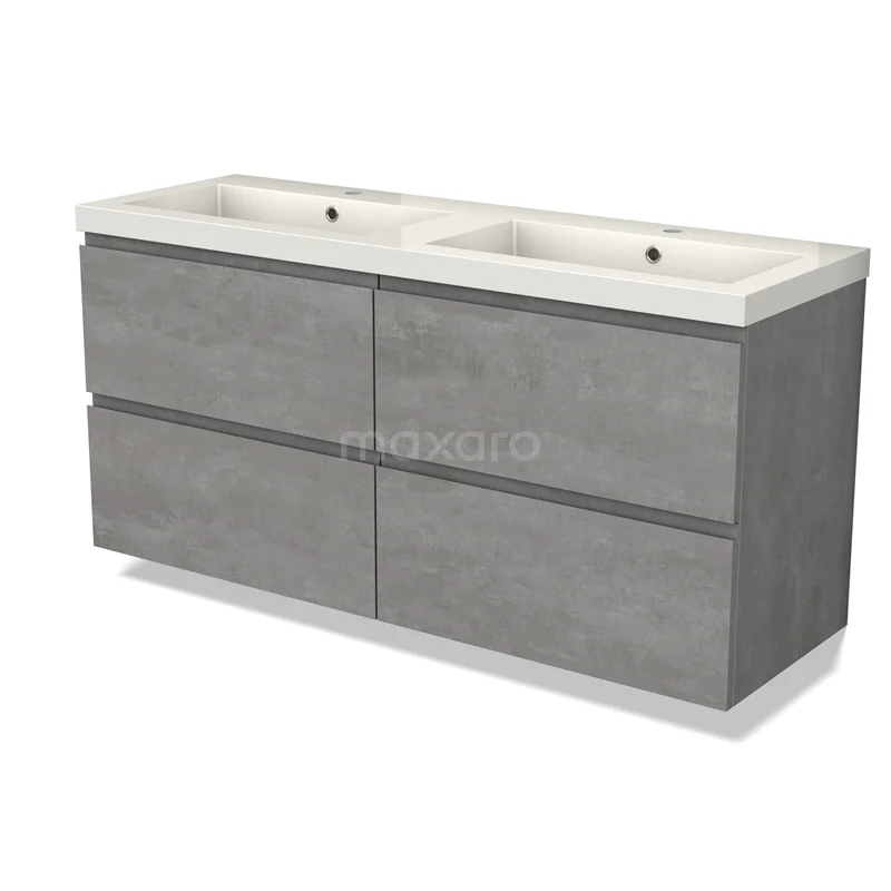 Modulo Bathroom furniture with sink | 140 cm Light grey concrete Handle-less front Mineral marble 4 drawers