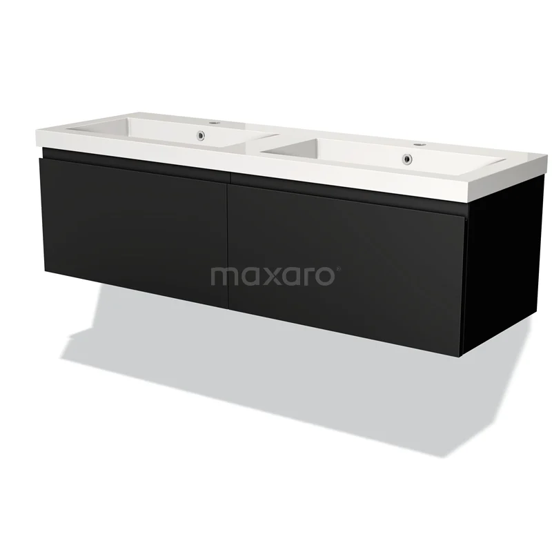 Modulo Bathroom furniture with sink | 140 cm Matte black Handle-less front Mineral marble 2 Side-by-side drawers