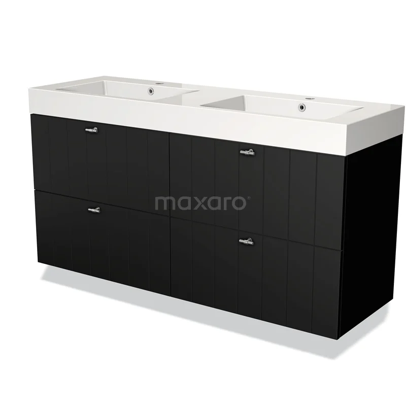 Modulo Bathroom furniture with sink | 140 cm Matte black Slat front Mineral marble 4 drawers