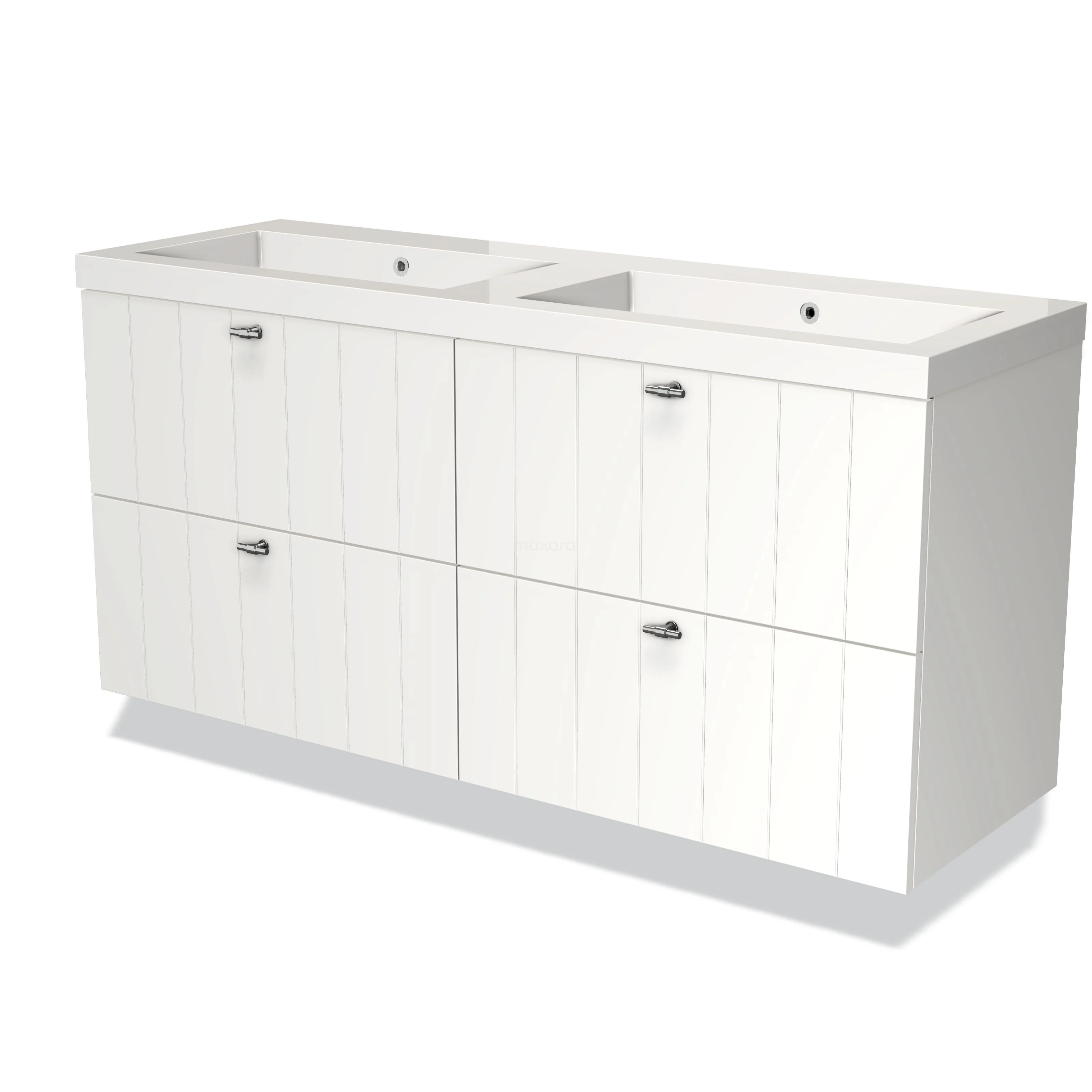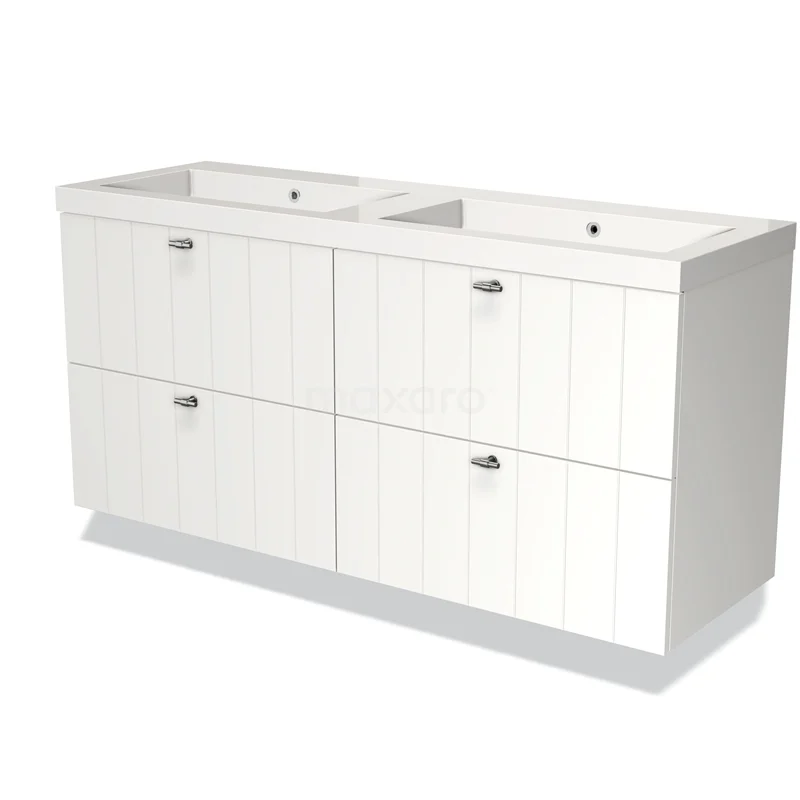 Modulo Bathroom furniture with sink | 140 cm Matte white Slat front Mineral marble 4 drawers