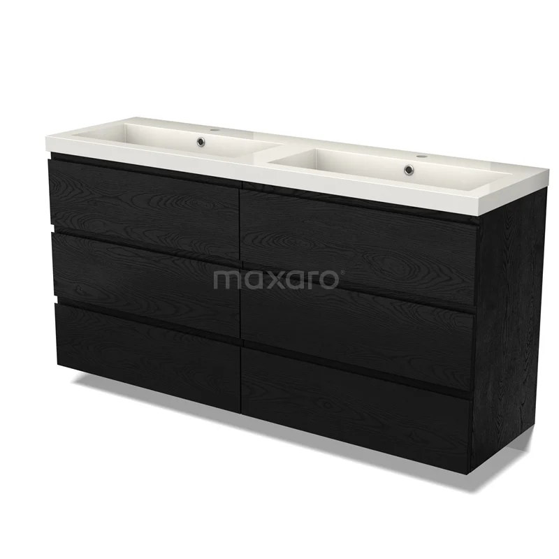 Modulo Bathroom furniture with sink | 160 cm Black oak Handle-less front Mineral marble 6 drawers