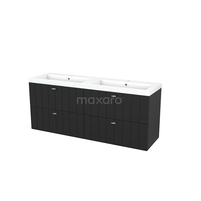 Modulo+ Bathroom furniture with sink | 160 cm Carbon Slat front Mineral marble 4 drawers