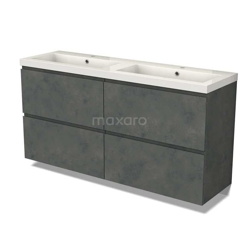 Modulo Bathroom furniture with sink | 160 cm Dark grey concrete Handle-less front Mineral marble 4 high drawers