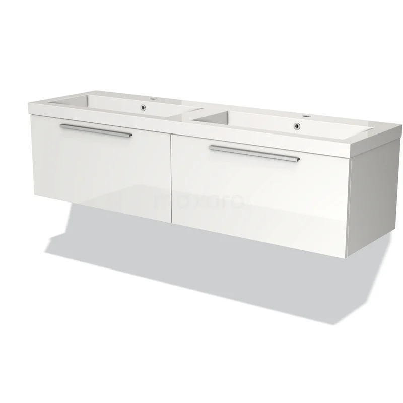 Modulo Bathroom furniture with sink | 160 cm High-gloss white Flat front Mineral marble 2 Side-by-side drawers