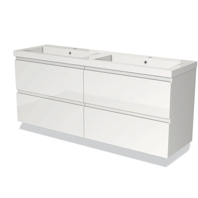 Modulo Bathroom furniture with sink | 160 cm High-gloss white Handle-less front Mineral marble 4 drawers