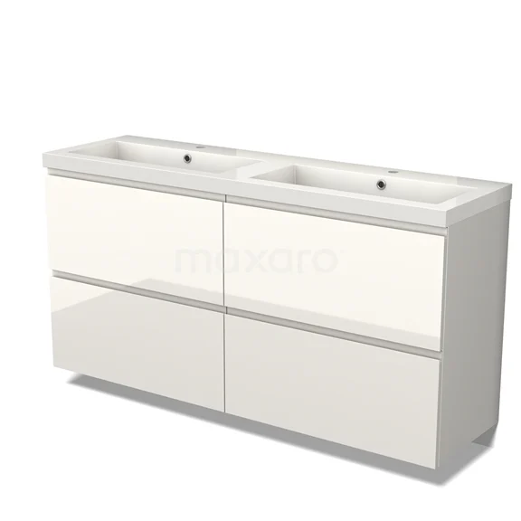 Modulo Bathroom furniture with sink | 160 cm High-gloss white Handle-less front Mineral marble 4 high drawers