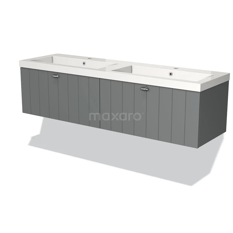 Modulo Bathroom furniture with sink | 160 cm Mid grey Slat front Mineral marble 2 Side-by-side drawers