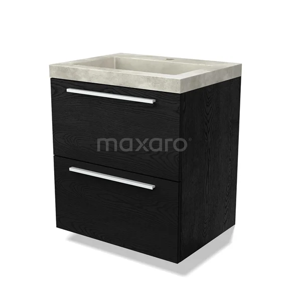 Modulo Bathroom furniture with sink | 60 cm Black oak Flat front Concrete 2 Stacked drawers
