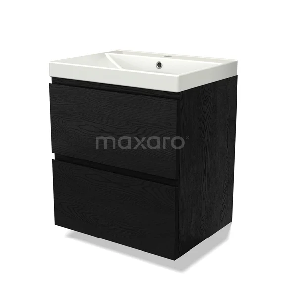 Modulo Bathroom furniture with sink | 60 cm Black oak Handle-less front Ceramic 2 Stacked drawers