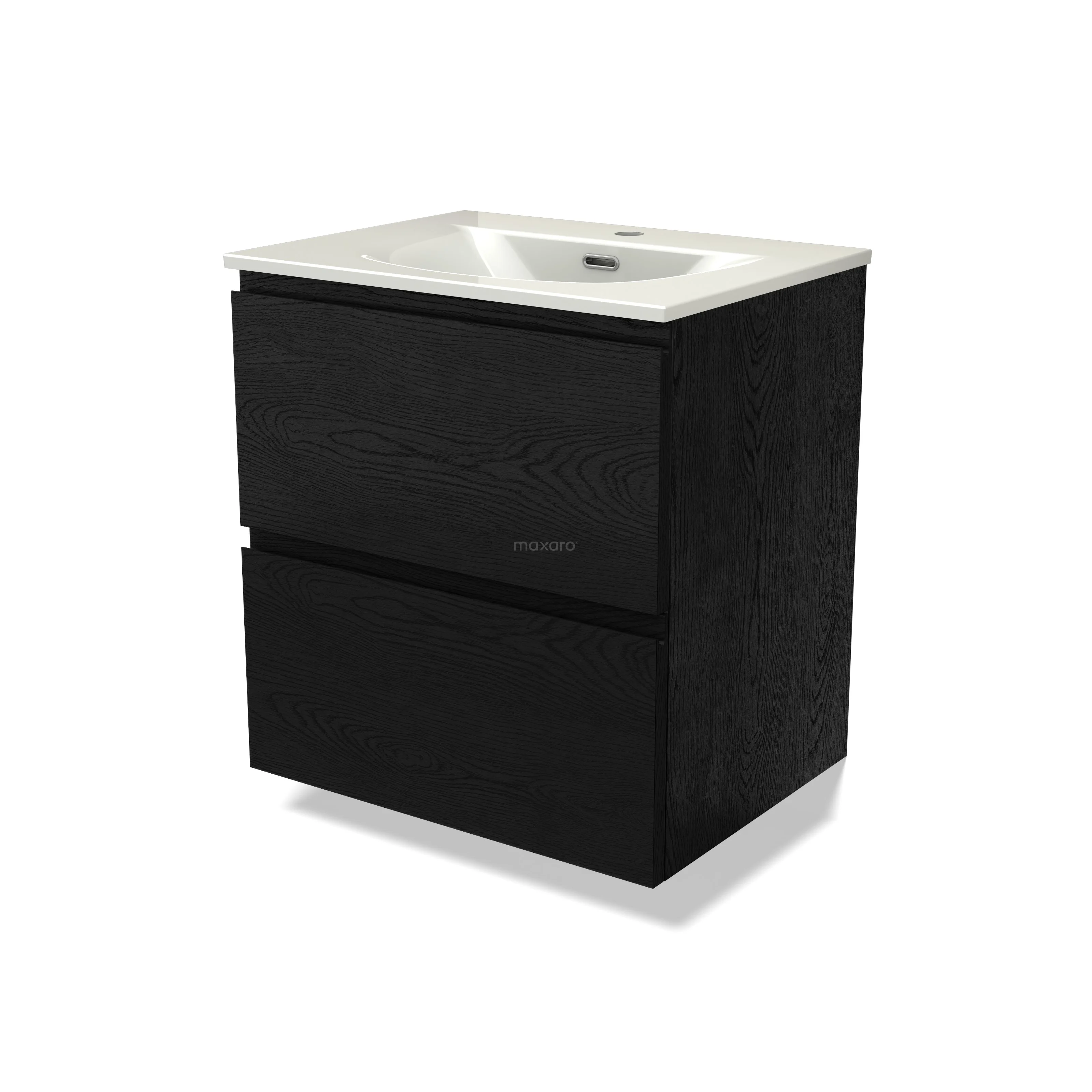 Modulo Bathroom furniture with sink | 60 cm Black oak Handle-less front Ceramic 2 Stacked drawers