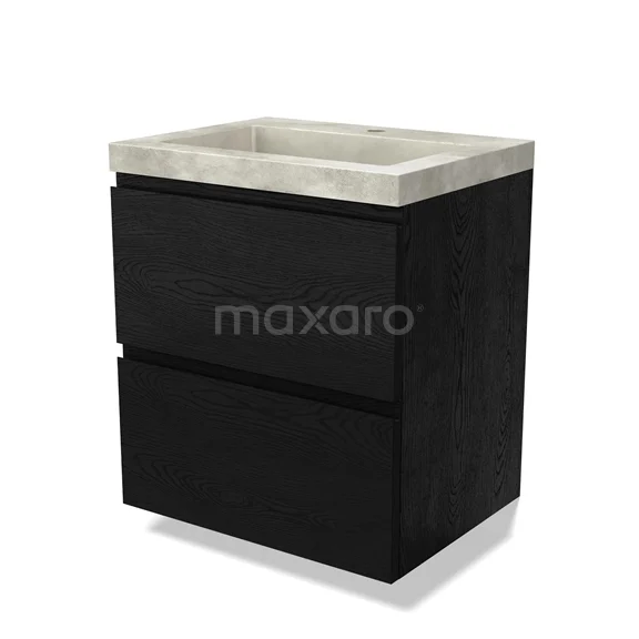 Modulo Bathroom furniture with sink | 60 cm Black oak Handle-less front Concrete 2 Stacked drawers