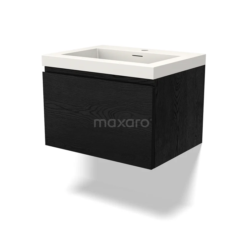 Modulo Bathroom furniture with sink | 60 cm Black oak Handle-less front Solid surface 1 drawer