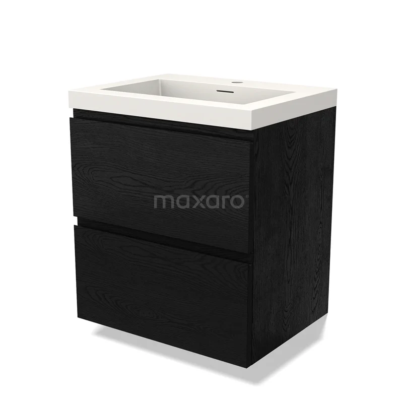 Modulo Bathroom furniture with sink | 60 cm Black oak Handle-less front Solid surface 2 Stacked drawers