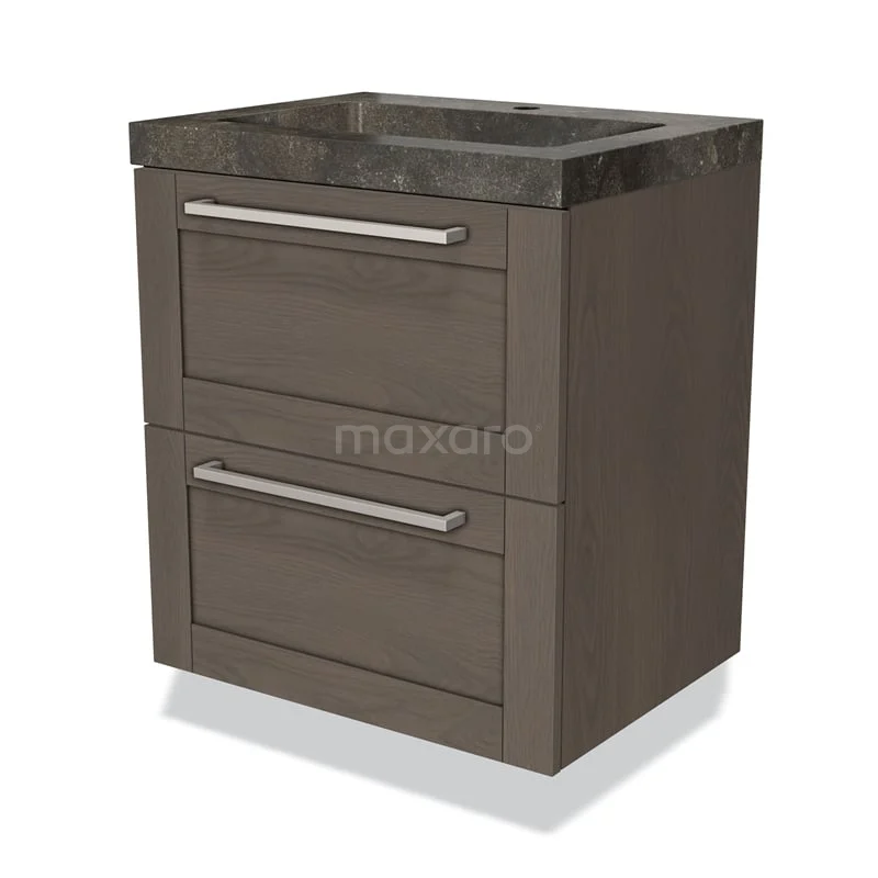 Modulo Bathroom furniture with sink | 60 cm Dark brown oak Bordered front Natural stone 2 Stacked drawers