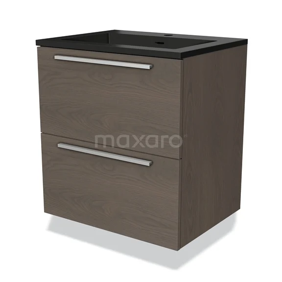 Modulo Bathroom furniture with sink | 60 cm Dark brown oak Flat front Quartz 2 Stacked drawers