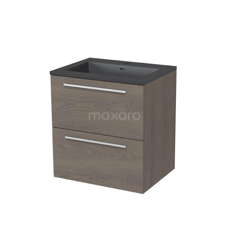 Modulo Bathroom furniture with sink | 60 cm Dark brown oak Flat front Quartz 2 Stacked drawers