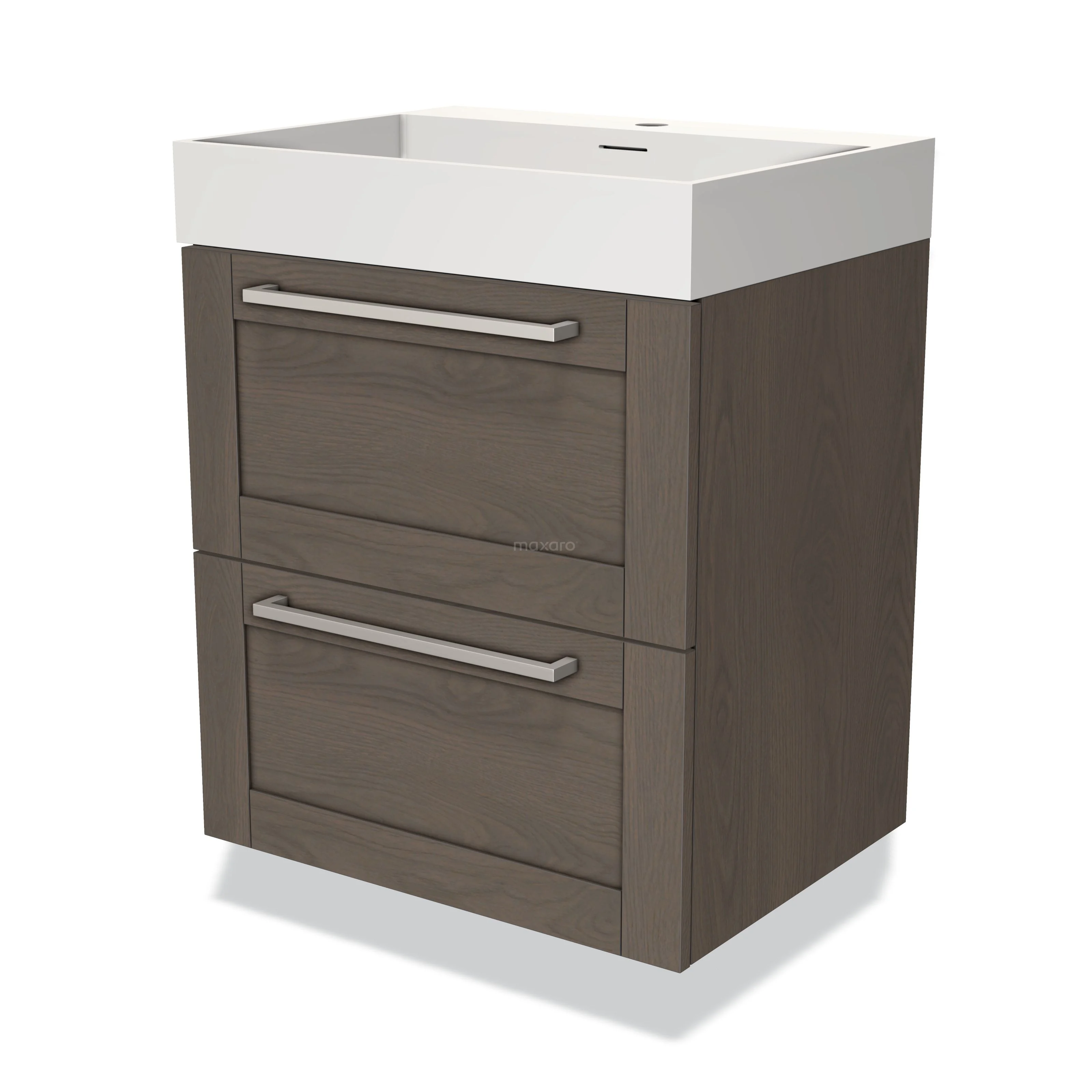 Modulo Bathroom furniture with sink | 60 cm Dark brown oak Frame front Solid surface 2 Stacked drawers