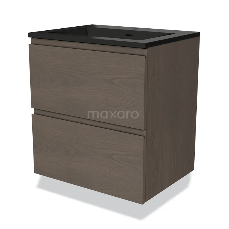 Modulo Bathroom furniture with sink | 60 cm Dark brown oak Handle-less front Quartz 2 Stacked drawers