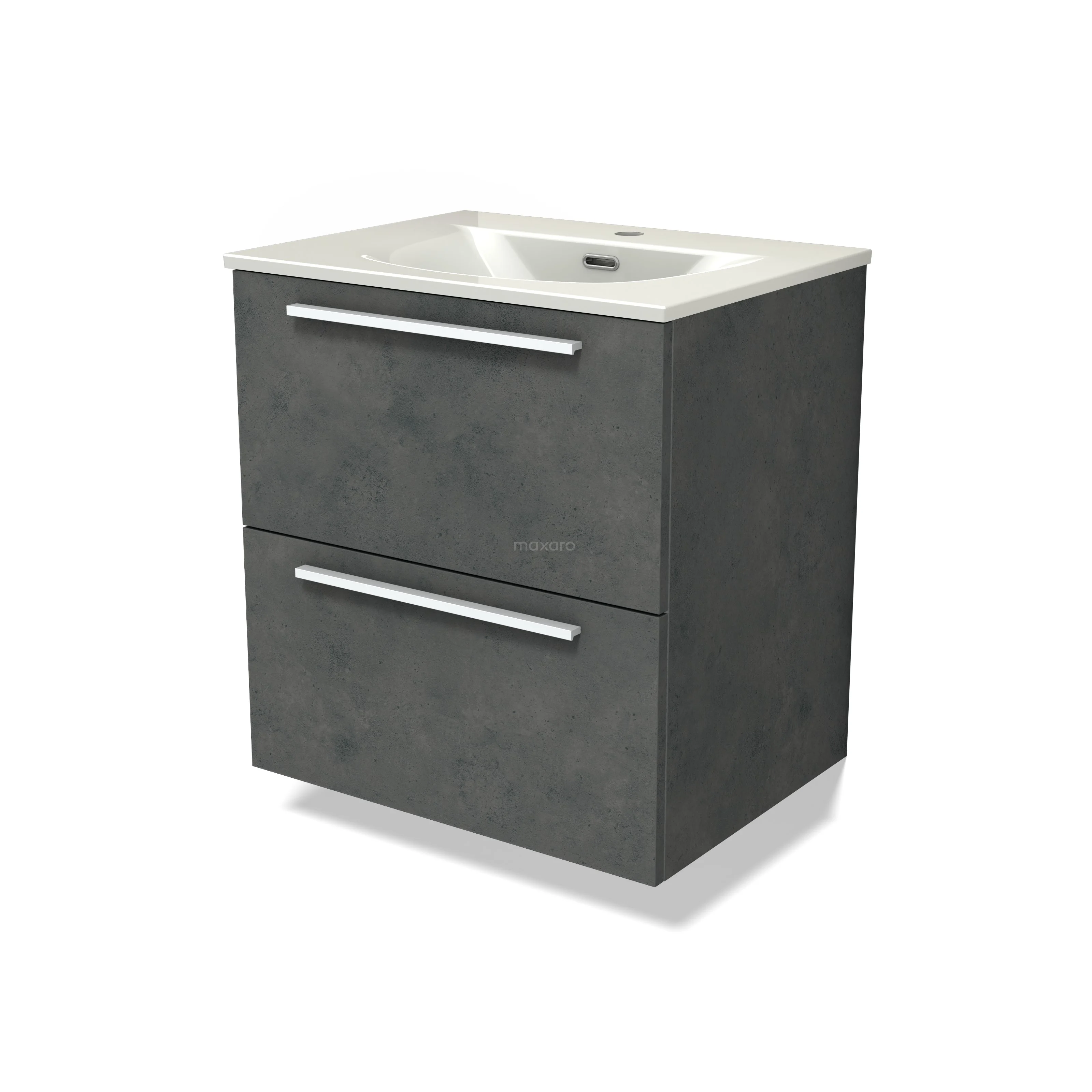 Modulo Bathroom furniture with sink | 60 cm Dark grey concrete Flat front Ceramic 2 Stacked drawers
