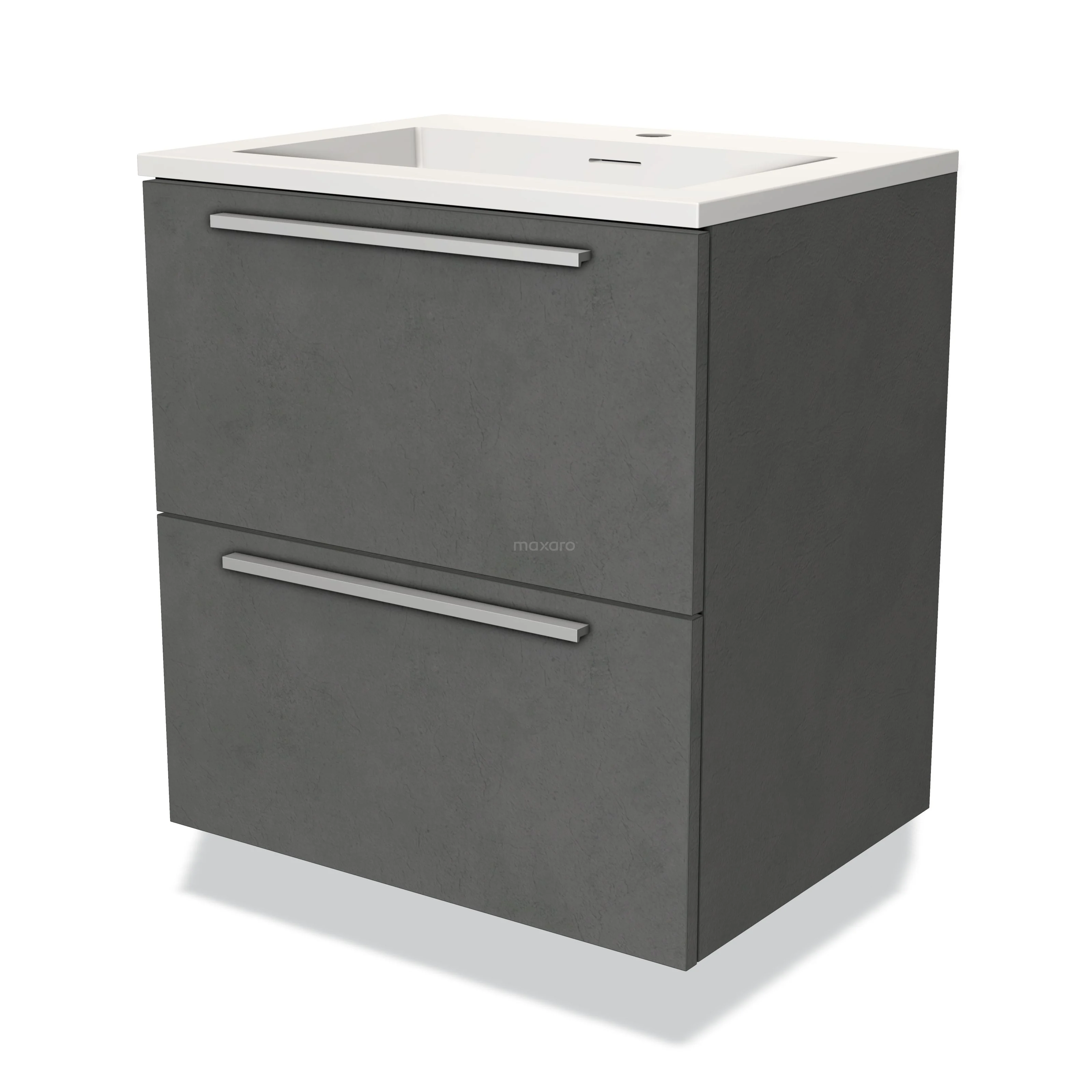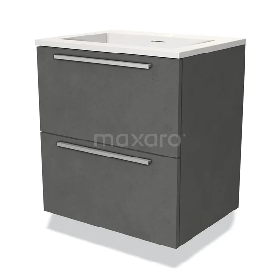 Modulo Bathroom furniture with sink | 60 cm Dark grey concrete Flat front Solid surface 2 Stacked drawers