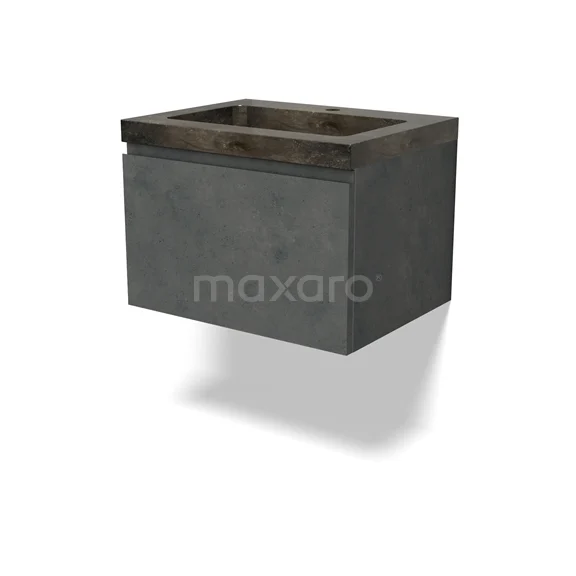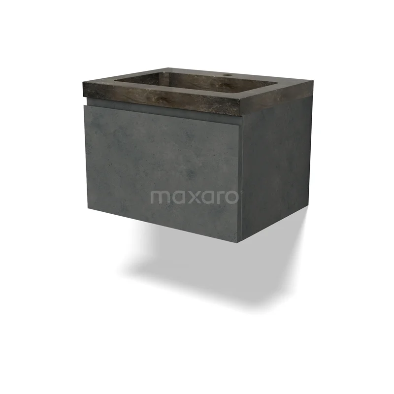 Modulo Bathroom furniture with sink | 60 cm Dark grey concrete Handle-less front Natural stone 1 drawer