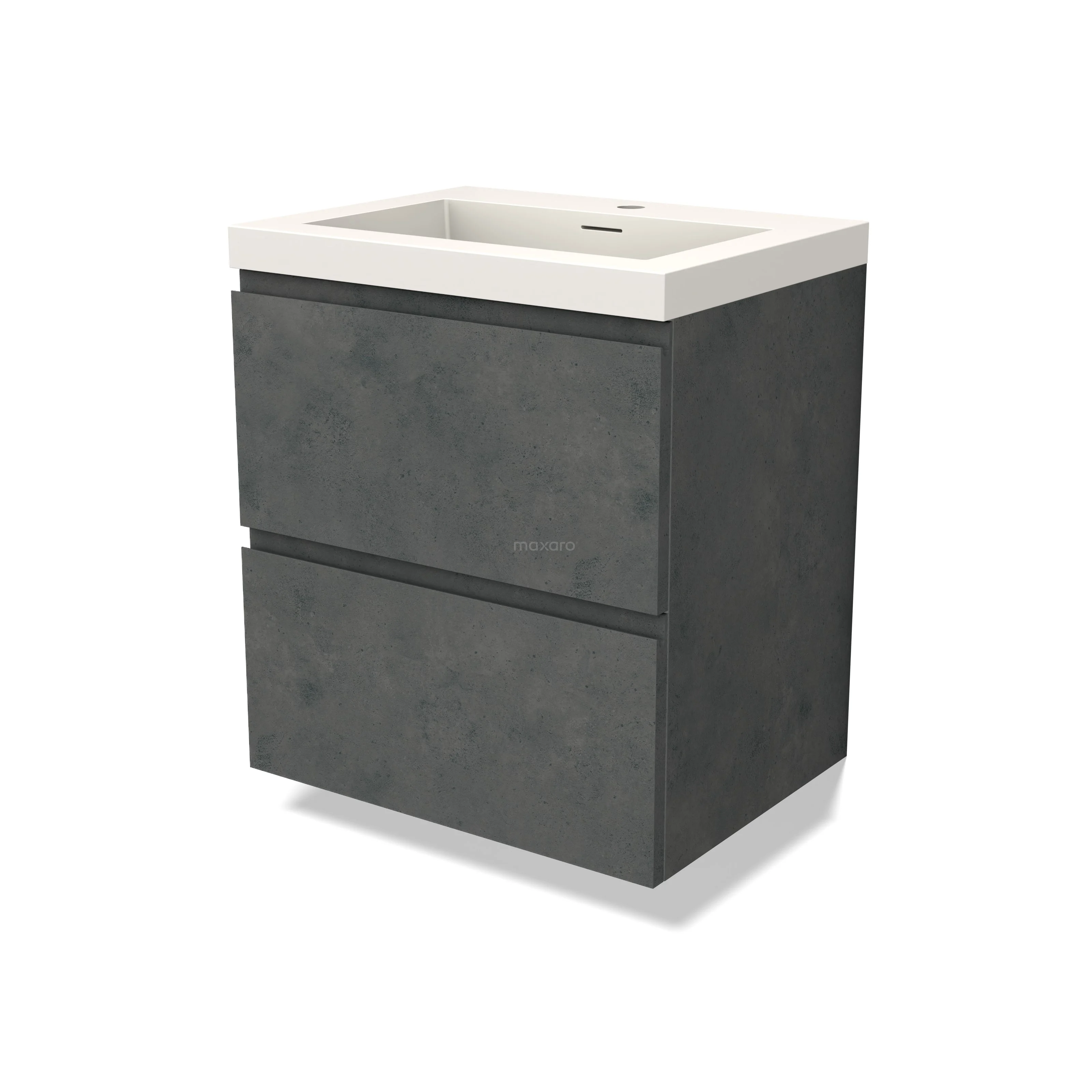 Modulo Bathroom furniture with sink | 60 cm Dark grey concrete Handle-less front Solid surface 2 Stacked drawers
