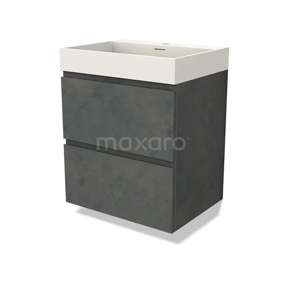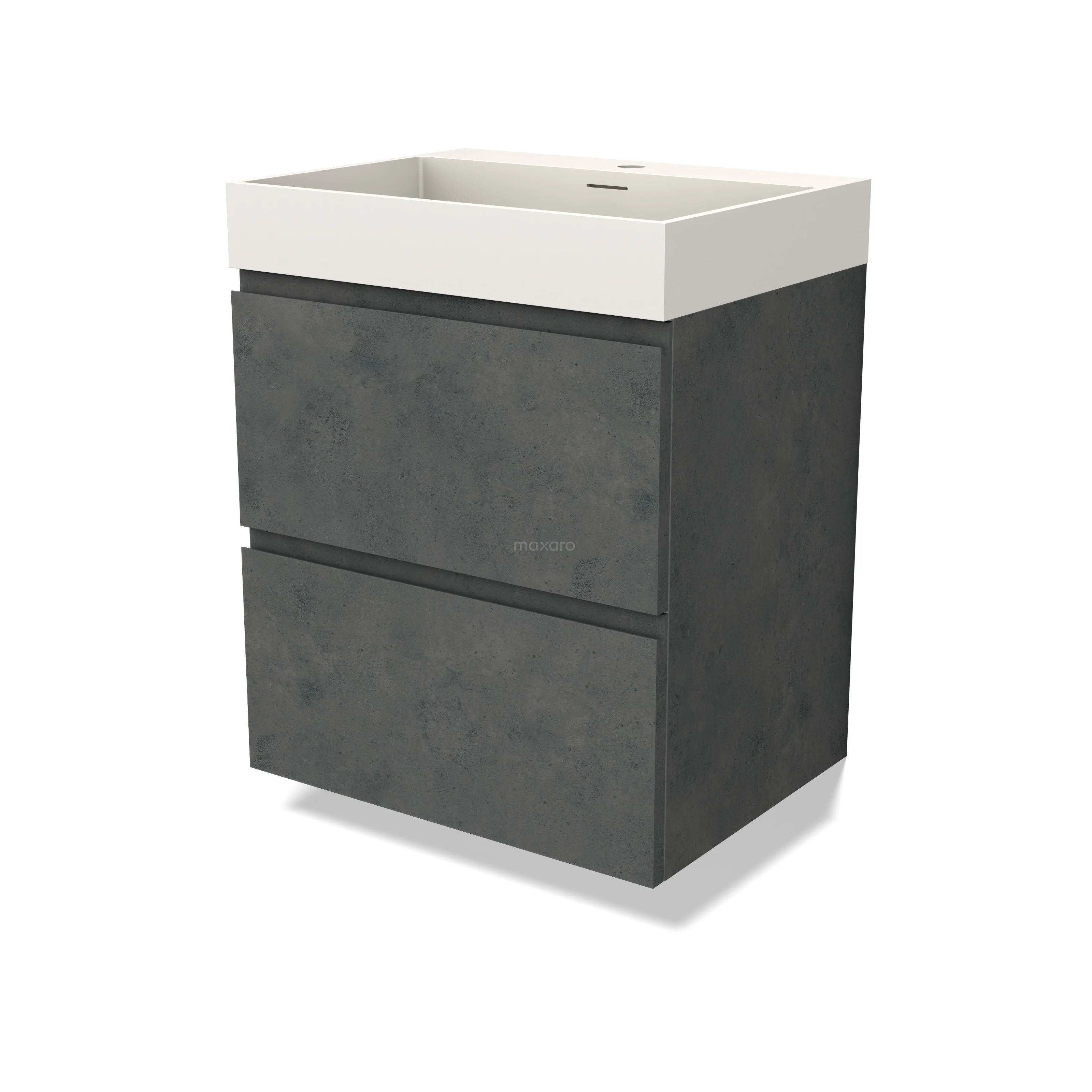Modulo Bathroom furniture with sink | 60 cm Dark grey concrete Handle-less front Solid surface 2 Stacked drawers