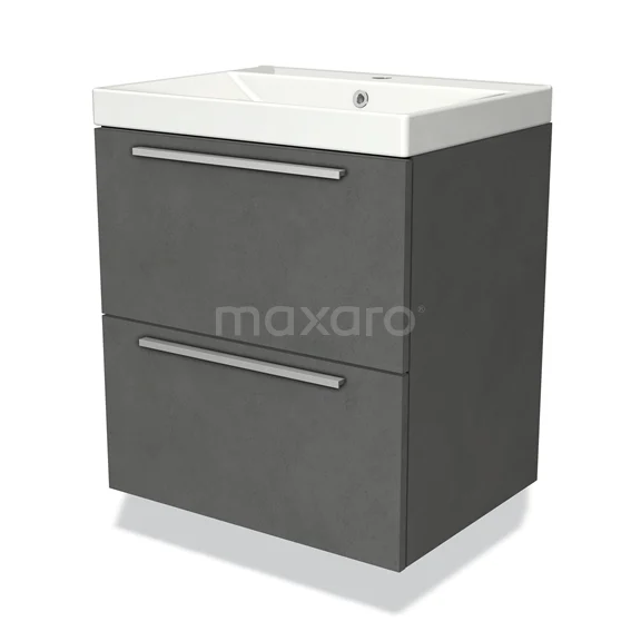 Modulo Bathroom furniture with sink | 60 cm Dark grey Flat front Ceramic 2 Stacked drawers