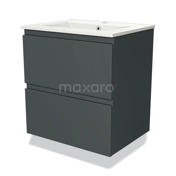 Modulo Bathroom furniture with sink | 60 cm Dark grey Handle-less front Ceramic 2 Stacked drawers
