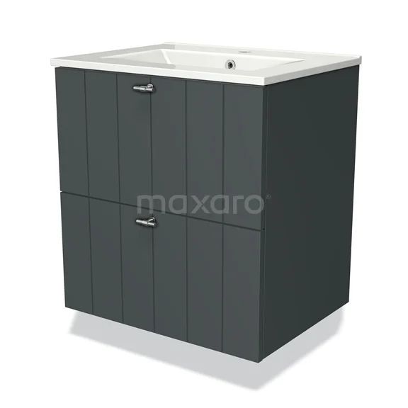 Modulo Bathroom furniture with sink | 60 cm Dark grey Slat front Ceramic 2 Stacked drawers