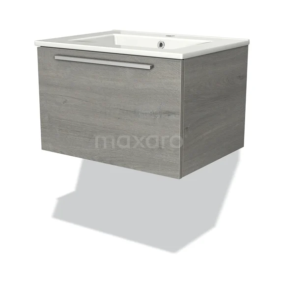 Modulo Bathroom furniture with sink | 60 cm Grey oak Flat front Ceramic 1 drawer