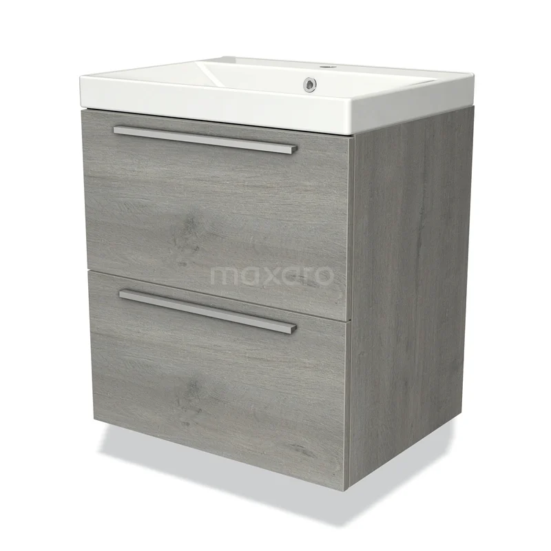 Modulo Bathroom furniture with sink | 60 cm Grey oak Flat front Ceramic 2 Stacked drawers
