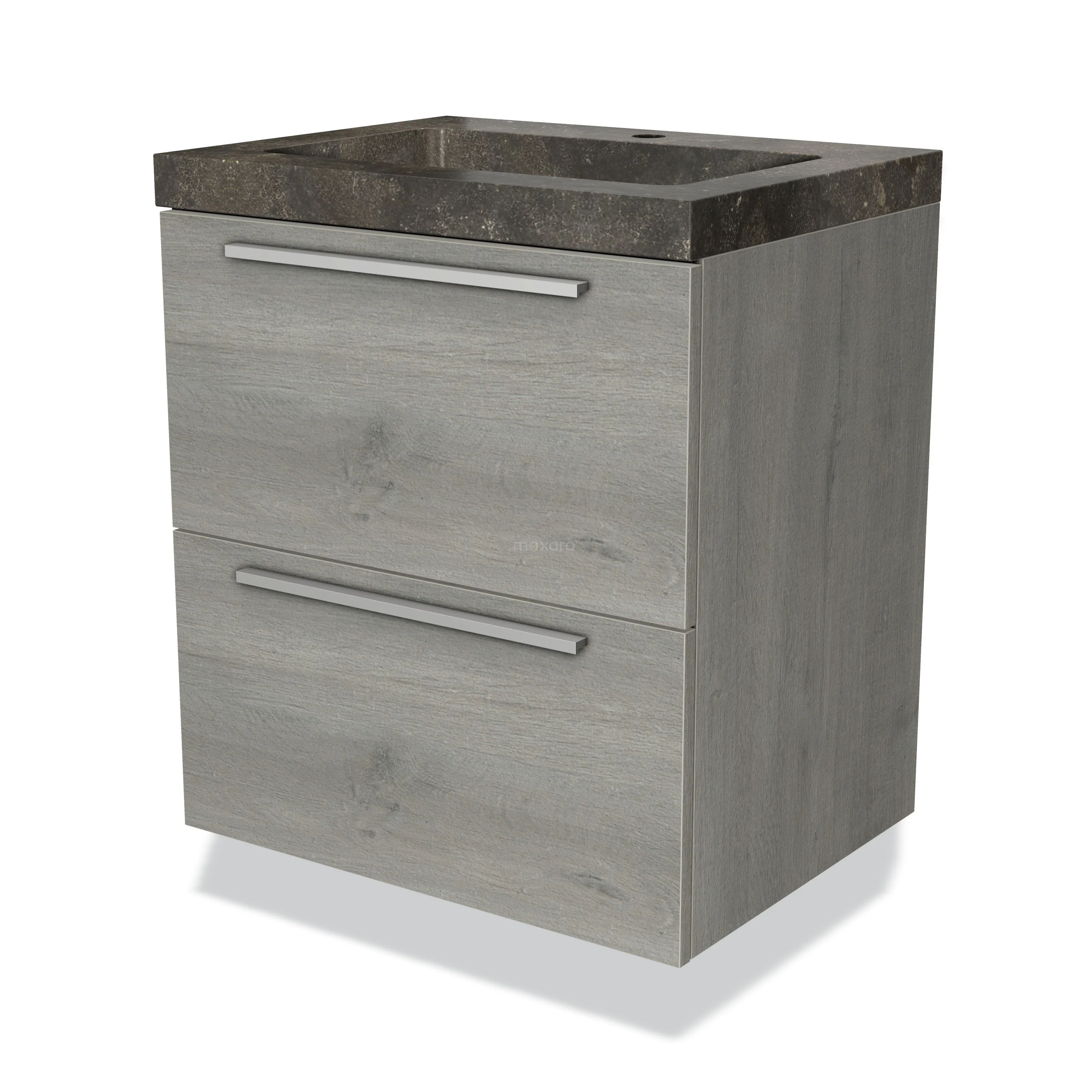 Modulo Bathroom furniture with sink | 60 cm Grey oak Flat front Natural stone 2 Stacked drawers