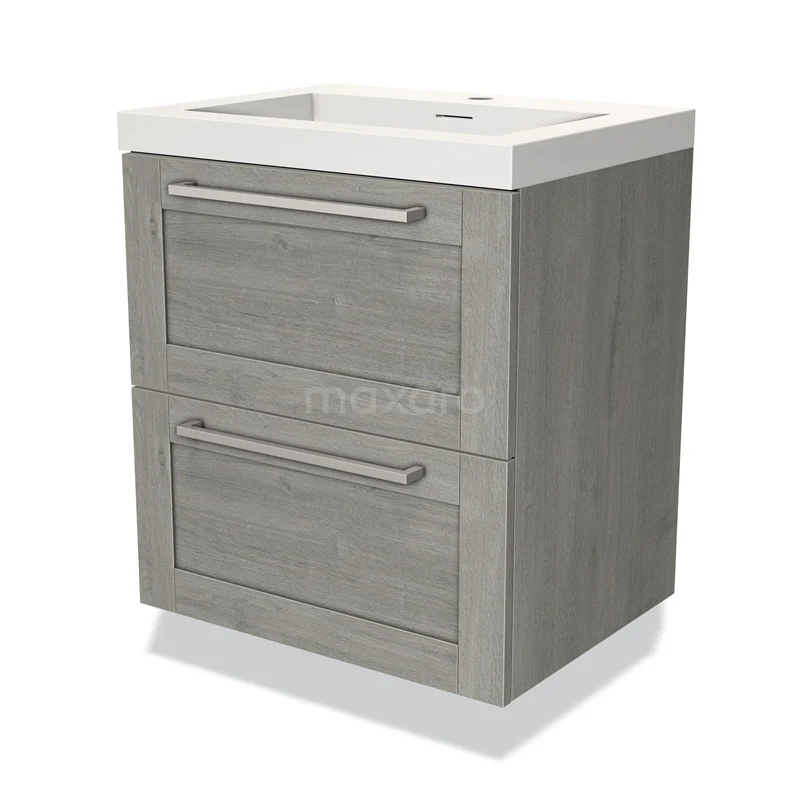 Modulo Bathroom furniture with sink | 60 cm Grey oak Frame front Solid surface 2 Stacked drawers
