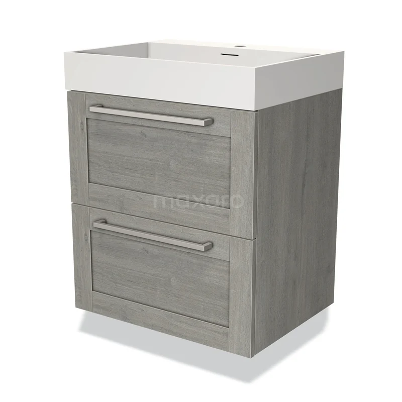 Modulo Bathroom furniture with sink | 60 cm Grey oak Frame front Solid surface 2 Stacked drawers