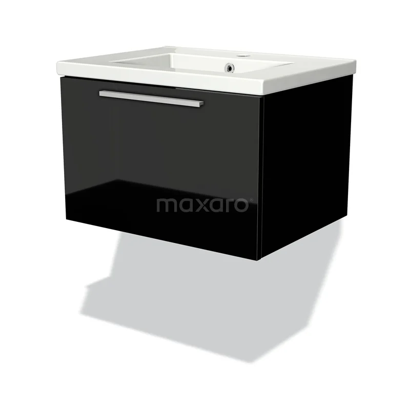 Modulo Bathroom furniture with sink | 60 cm High-gloss black Flat front Ceramic 1 drawer