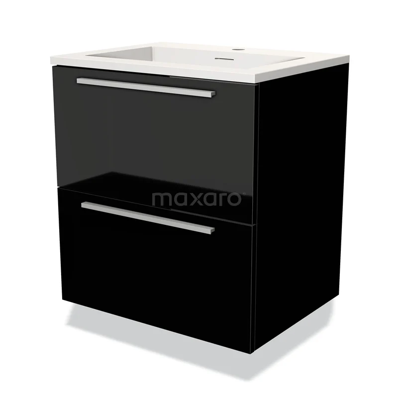 Modulo Bathroom furniture with sink | 60 cm High-gloss black Flat front Solid surface 2 Stacked drawers