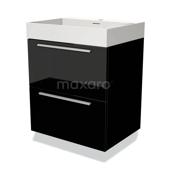 Modulo Bathroom furniture with sink | 60 cm High-gloss black Flat front Solid surface 2 Stacked drawers