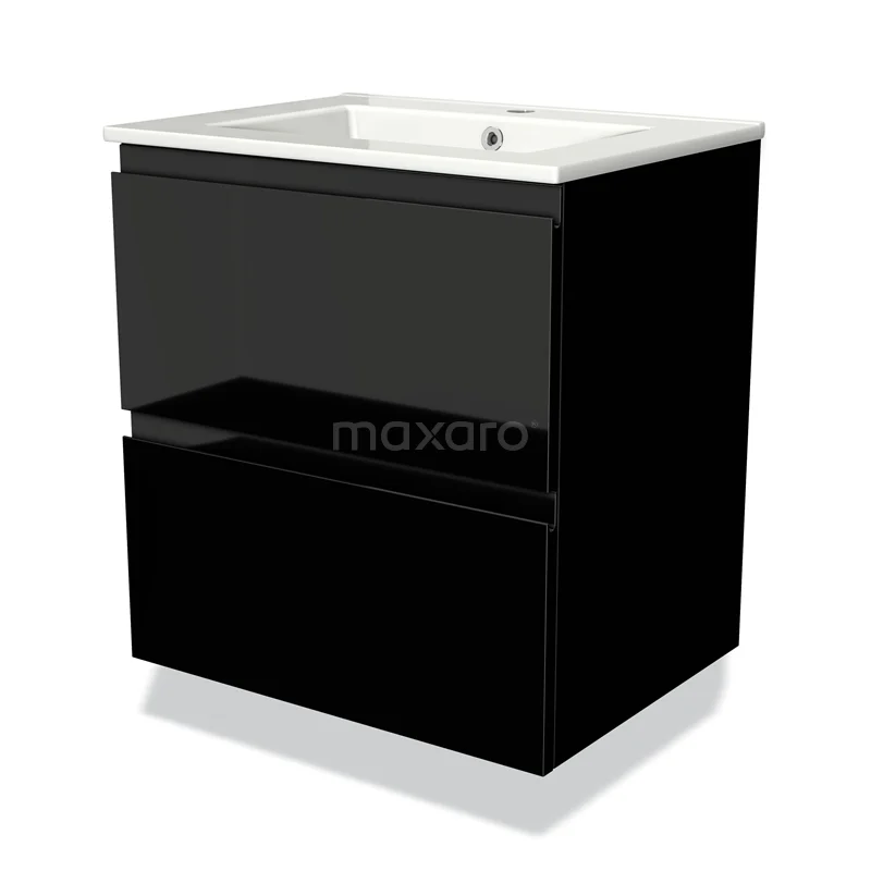 Modulo Bathroom furniture with sink | 60 cm High-gloss black Handle-less front Ceramic 2 Stacked drawers