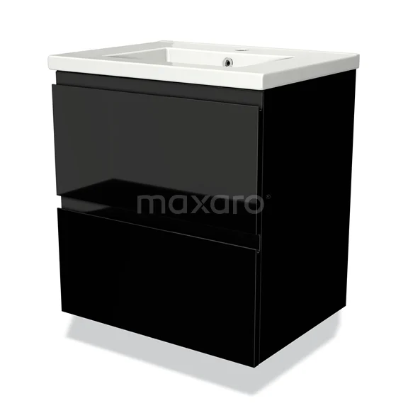 Modulo Bathroom furniture with sink | 60 cm High-gloss black Handle-less front Ceramic 2 Stacked drawers