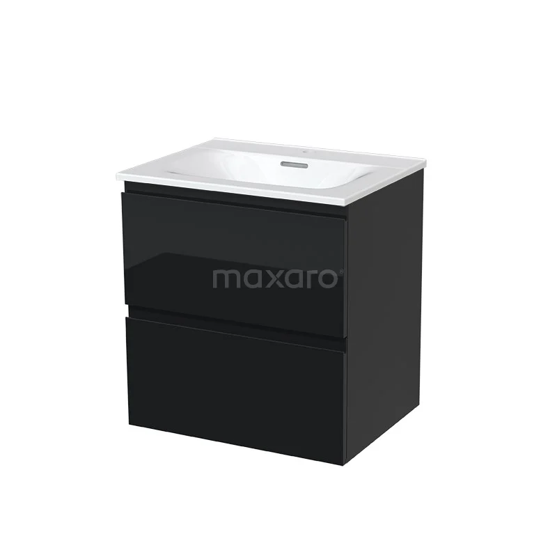 Modulo Bathroom furniture with sink | 60 cm High-gloss black Handle-less front Ceramic 2 Stacked drawers