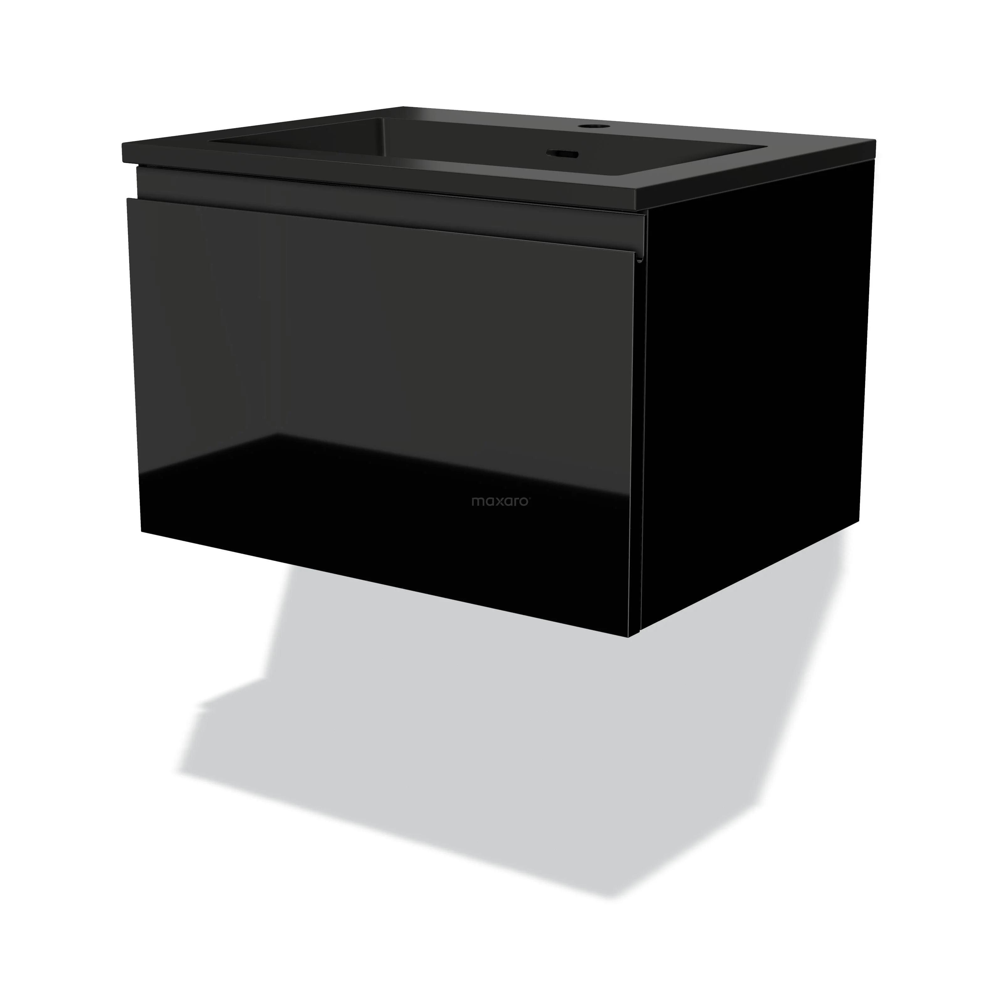 Modulo Bathroom furniture with sink | 60 cm High-gloss black Handle-less front Quartz 1 drawer