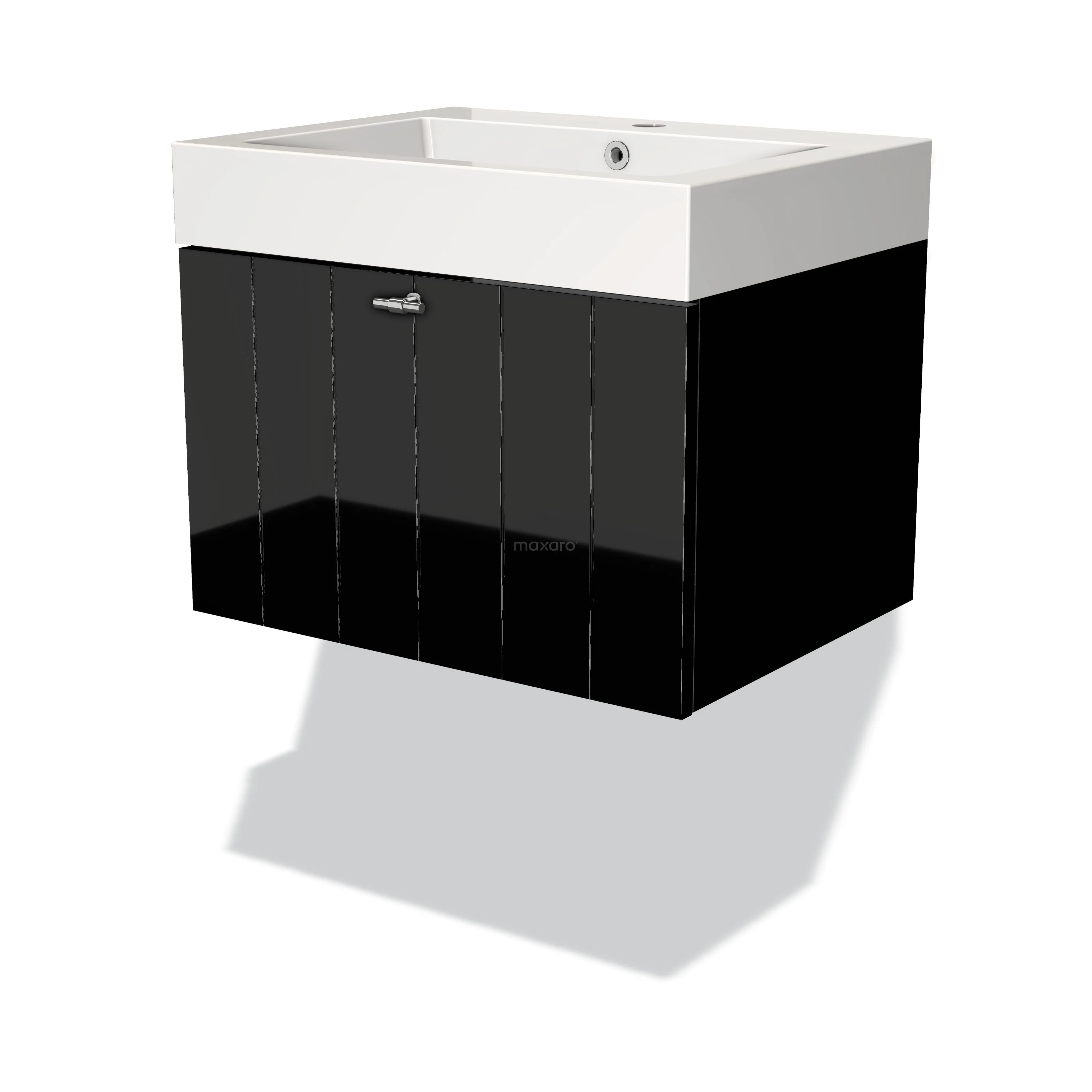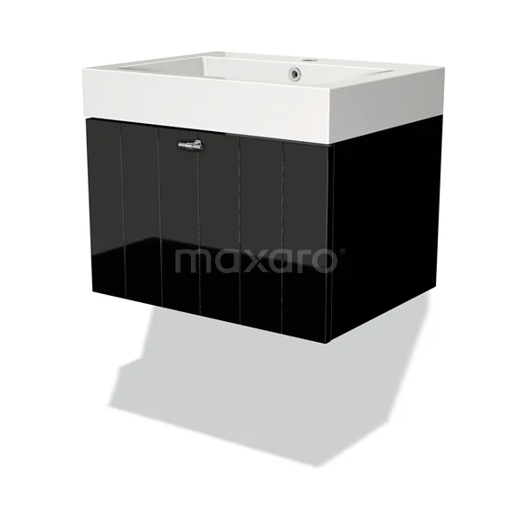 Modulo Bathroom furniture with sink | 60 cm High-gloss black Slat front Mineral marble 1 drawer