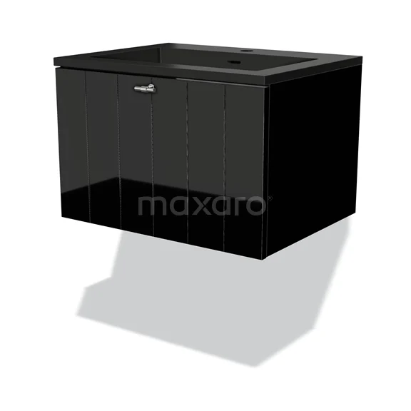 Modulo Bathroom furniture with sink | 60 cm High-gloss black Slat front Quartz 1 drawer