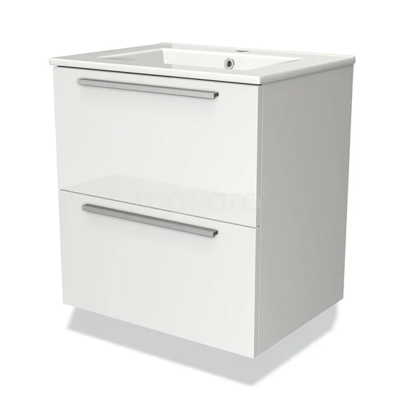 Modulo Bathroom furniture with sink | 60 cm High-gloss white Flat front Ceramic 2 Stacked drawers